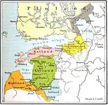 ![]() Finlands län 1634: 1: Åbo och Björneborg, 14: Nyland och Tavastehus, 18: Österbotten, 20: Viborg och Nyslott, 21: Kexholm  |