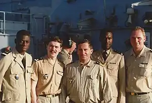 Khaki er en normal farve på militæruniformer, som set på disse tyske og senegalesiske officerer.