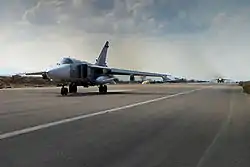 Khmejmim-luftbasen blev bygget i midten af 2015 ved siden af Bassel Al-Assad International Airport for at være "det strategiske centrum for den russisk militære intervention i den syriske borgerkrig".[3] Eksistensen af den russiske strategiske base blev afsløret af USA i begyndelsen af september 2015, og amerikanske embedsmænd udtrykte bekymring over muligheden for eskalering af konflikten i Syrien. Luftbasen blev operationel den 30. september 2015.[4][5][6]