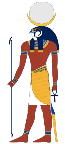 Hans attributter var måneskive samt høge og knive. Hans navn betyder "den rejsende". Han blev fremstillet som et mumificeret barn med en blanding af was-sceptret, djedsøjlen og ankhtegnet, i hænderne, eller som en mand med falkehoved og måneskive på hovedet.