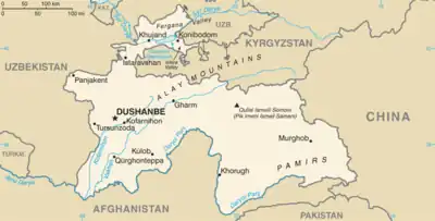 | | Spire Denne artikel om Tadsjikistans geografi er en spire som bør udbygges. Du er velkommen til at hjælpe Wikipedia ved at udvide den. |