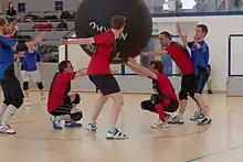 - Når 3. person på et hold rører bolden, må spillere der herefter har (eller har haft) kontakt med bolden ikke flytte fødderne. Dette kaldes "freeze".