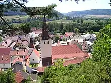 Kinding ved sammenløbet af floderne Anlauter, Schwarzach og Altmühl i Naturpark Altmühltal.