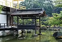 Den Gyldne Pavilion (金 閣 Kinkaku) er en tre-etagers bygning på grund af Rokuon-ji-templet. [10] De to øverste etager i pavillonen er dækket af rent bladguld. [10] Pavillonen fungerer som en shariden (舎 利 殿), opbevaringssted for Buddhas aske. Bygningen var en vigtig model for Ginkaku-ji (Sølv Pavilion-templet) og Shōkoku-ji, som også ligger i Kyoto. [1] Da disse bygninger blev bygget, brugte Ashikaga Yoshimasa stilarterne, der blev brugt på Kinkaku-ji, og lånte endda navnene på dens anden og tredje etage. [1]