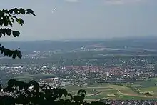 Udsigt over Kirchheim unter Teck fra det nærliggende bjerg Teck