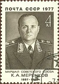 ![]() Kirill Meretskov på russisk frimærke | |