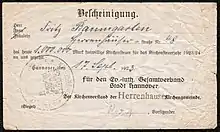 Kvittering for betalt kirkeskat i Tyskland i 1923