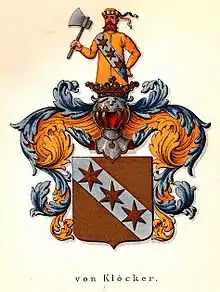 Familien Klöcker blev optaget i den tyske adel af kejser Rudolph II, idet brødrene Philipp Jacob og Carl Klockher, som stammede fra en patricierfamilie i Görlitz, erholdt et adelsbrev 12. juli 1586 af den tyske kejser.[1] Dens adel blev fornyet 16. august 1757 af kejser Frans I.