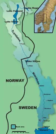 Fra søen Rogen i Härjedalen løber Klarälven ind i Hedmark i Norge, hvor den kaldes Trysilelven eller Klara.