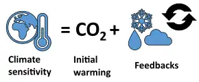 - Om ECS : "... If atmospheric CO2 were held at double pre-industrial concentrations, the planet would still continue to warm. This is because the world’s oceans take a long time to heat up in response to the enhanced greenhouse effect. The Equilibrium Climate Sensitivity (ECS) is the amount of warming achieved when the entire climate system reaches ‘equilibrium’ or the stable temperature response to a doubling of CO2. ..." (Dansk resumé: 'Hvis atmosfærisk CO2 forblev på det dobbelte af præindustrielle koncentrationer, ville planeten fortsat blive varmere. Det skyldes, at verdens oceaner er lang tid om at varme op som reaktion på den forøgede drivhuseffekt. Equilibrium Climate Sensitivity' (ECS) er den opvarmning, der fås, når hele klimasystemet igen er i 'ligevægt' på det dobbelte CO2-niveau')