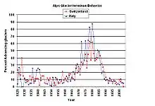 Også uden for perioder med istid anerkendes gletsjere som meget sensitive indikatorer for klimaændringer, da de vokser signifikant under køligere perioder, som fx Den lille istid og trækker sig tilbage under varmere perioder. Gletsjeres vækst og kollaps forstærker dog også effekten af de øvrige faktorer. I de senere år er mange gletsjere verden over svundet ind, da de ikke har været i stand til at regenerere sommerafsmeltningen i løbet af vinteren.[10]