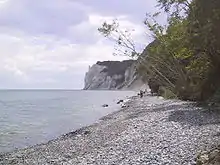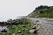 - hvis en klint består af nogenlunde ensartet materiale (sand, ler, kridt), vil den have et mere eller mindre lodret eller svagt skrånende fald ned mod havoverfladen efter materialets sammenhængskraft.