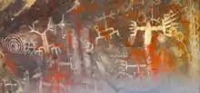Motiverne omfatter talrige skabninger fra dyreriget, dyre- og fuglespor, fabeldyr som f.eks. tordenfugle, menneskelignende figurer i stivnede positioner, krigere og jægere samt dansere i aktion, kulturgenstande og tillige abstrakte mønstre eller symboler.[6]