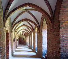 Klostre består af et firlænget bygningsværk, ofte af røde munkesten eller teglsten og med en indvendig buegang, den såkaldte korsgang. Klostre lukker sig således omkring en klostergård, der til alle sider var omgivet af en overdækket fratergang.