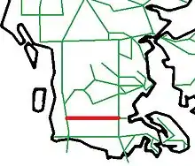 Banen gik i højre side af Grenvej vest for Klovtoft
