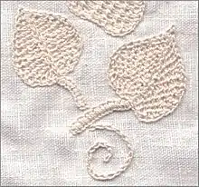 Broderi bruger knaphulssting til flere typer mønster.