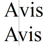 Eksemplet nedenfor viser hvordan "A" og "v" i "Avis" knibes for at opnå et bedre udseende af det resulterende ord: