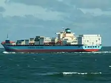 Et handelsskib fra Maersk Line på vej ud af havnen i Rotterdam.