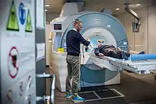 - fMRI-skanning eller funktionel magnetisk resonsans-skanning bruger de samme principper som den strukturelle MR-skanning, men i stedet udnyttes det at signalet fra skanneren er forskelligt alt efter hvor meget ilt hjernens blod indeholder. Hermed har man et mål, som indirekte afspejler iltforbruget i hjernen og dermed hjernens aktivitetsniveau. Ved at optage billeder hurtigt efter hinanden kan ændringer i iltningen over tid måles. Derved kan det undersøges om der er steder i hjernen, som ændrer deres iltforbrug efter typen af opgave, som forsøgspersonen udfører.