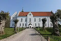 Hovedbygningen, der ligger højt på et bakkehæld med vid udsigt over Limfjorden, er rejst på et bakkeformet voldsted omgivet af lerede grave. På voldskråningerne er der nu haveanlæg.
