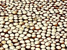 Soltørring af kokosnødder for produktion af kopra (tørret kød af kokosnød), som olien udvindes fra.