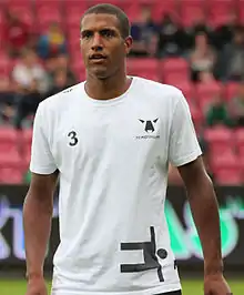 ![]() Kolja Afriyie varmer op før FCM-FCK 28. juli 2013 | |||