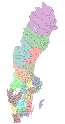 Visse kommuner, særligt større, kan have kommundelsnämnd (kommunedelsnævn), områdesnämnd (områdenævn) eller stadsdelsnämnd (bydelsnævn). Alle kommuner skal endvidere være inddelt i församlinger (sogne), der spiller en vis rolle ved folketælling og valg. Der er i alt 2.512 församlinger i Sverige.