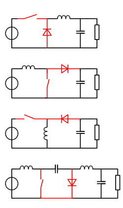 Den "Buck-boost-afledte"-kommutationscelle er opbygget af en spole, en aktiv kontakt – og en passiv kontakt – typisk en diode (eller en synkronensretter – f.eks. en transistor).