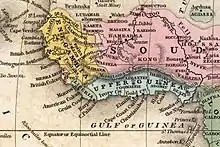 Kong-bjergene på et kort over Vestafrika fra 1839.