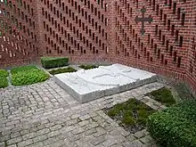 Stenkrypten hvor Harald antages at ligge begravet ligger ret nærved kirken i Wiejkowo.[18]  |