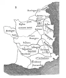 Området rundt om den nedre del af Seinen blev en kilde til bekymring da Vilhelm Erobreren tog kontrol over kongeriget England gennem normannernes erobring af England i 1066, og gjorde sig og sine arvtagere kongeværdig udenfor Frankrig (hvor han fortsat teknisk set var underlagt den franske krone). Henrik 2. af England arvede hertugdømmet Normandiet og og giftede sig med Frankrigs nylig skilte eks-dronning Eleonora af Aquitanien, som regerede over en stor del af Sydvestfrankrig, i 1152. Efter at have slået et oprør i 1173–1174 ledet af Eleonore og tre af deres fire sønner, fik Henrik Eleonore fængslet, gjorde hertugen af Bretagne til sin vasal, og styrede dermed i praksis Vestfrankrig med større magt end den franske trone selv. Efter uoverensstemmelser mellem Henriks arvinger over hvordan opdelingen af hans franske territorier skulle være, samt med Filip II Augusts fejde med Johan uden Land, fik Filip II genoprettet indflydelsen over hovedparten af dette territorie. Efter den franske sejr i slaget ved Bouvines i 1214 havde de engelske monarker kun kontrol over det sydvestlige Aquitaine.