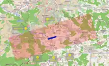 Kontrolzone (farvet rød) over Stuttgarts lufthavn med pligtmeldepunkter (gule), i midten start- og landingsbane (blå).