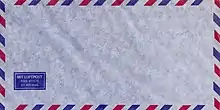 - Luftpostkuvert, typisk forsynet med rød/blå kant, så postpersonalet let kan skelne den fra almindelige forsendelser.