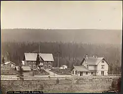 Den første stationsbygning blev opført til åbningen i 1875 efter tegninger af arkitekten Georg Andreas Bull. Det er den sidste tilbageværende af hans "Stor National". Bygningen blev afløst af en ny stationsbygning ved siden af, der blev tegnet af Arvid Sundby og Ina Backe og opført i 1959.