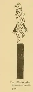 Alle vintertællinger beretter om år med koppe-epidemier.[5] Her en kopperamt kiowa