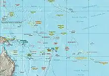 Kort som viser Koralhavets placering, afmærket som Coral Sea