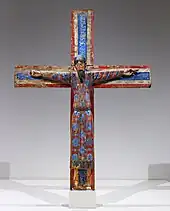 På kirkemødet i Konstantinopel i 692 vedtog man bl.a. at forbyde fremstillingen af Kristus som et lam og bød, at han fremover skulle vises som menneske. Sådant et kors med afbildning af Kristus kaldes et krucifiks. Krucifikset blev først rigtigt populært i 900-tallet, i form af det såkaldte "kongekrucifiks". Kongekrucifikset, der også kaldes det romanske kors, forestiller en påklædt Kristus med krone på, naglet med 4 nagler til korset, men uden tegn på lidelse ("den sejrende Kristus"). Man tænkte sig, at denne sejrende skikkelse ville appellere til vikingetidens mennesker. [5] "Lidelseskrucifikset", også kaldet det gotiske kors, blev indført af fransiskanerne i 1200-tallet. Her er Kristus gjort menneskelig og lider på korset – han hænger efter armene, hovedet er uden krone eller med tornekrone, og der er kun brugt 3 nagler, hvoraf den ene går gennem begge fødder.