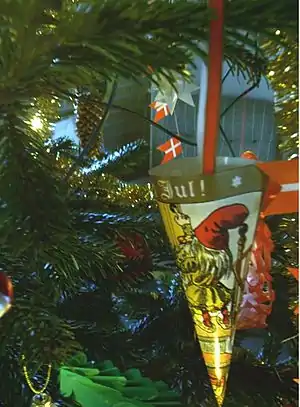 Kræmmerhuset på juletræet er luksusudgaven af de kræmmerhuse, som førhen blev brugt som emballage, når der blev handlet ved købmanden og med omrejsende kræmmere, der solgte mel, sukker og gryn "i løs vægt". Sådanne kræmmerhuse kunne frembringes umiddelbart af de handlende.[1]
