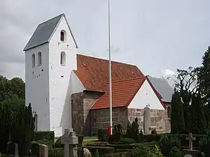 Tårn og våbenhus er opført i sengotisk tid. Våbenhuset er muligvis opført af sten fra en nedbrudt kirke i Engesvang. Til opførelsen af våbenhuset har man brugt vinduesoverliggere og kragsten fra korbuen, øst for døren ses en kragsten med arkader, vest for døren ses en kragsten med to dyr omkring et kors, reliefstenen er indsat på hovedet, begrundelsen for dette kendes ikke. Kirken blev istandsat i 1964-65.