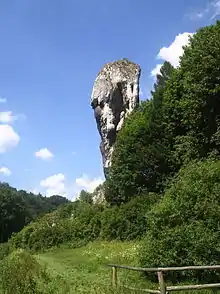 De polske Jura består af et kuperet landskab med kalksten fra juratiden, klipper, dale og store kalkstensformationer med omkring 220 huler. Højlandet udviklede sig siden den palæogene periode, under klimatiske forhold der ændrede sig betydeligt. Dens hovedkomponent er et peneplant område, med klipper og stenmasser, der modstod erosion, genereret som hårdere sten på senjuraopbygning omgivet af mindre modstandsdygtig kalksten i samme alder.[1] De polske Jurabjerge besøges af omkring 400.000 mennesker om året. En del af det ligger i Ojców Nationalpark, den mindste af Polens tyve nationalparker, der er blandt de mest attraktive rekreative områder i landet.[2]