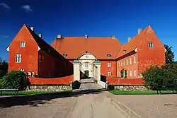 Slottet var dengang en klassisk borg med ringmur, voldgrav og et højt forsvarstårn (tårnet blev revet ned i slutningen af 1600-tallet). Ombygningerne i 16 og 1700-tallet gav herregården sit nuværende udseende. De syvtakkede kridtstensstjerner, der er Gyldenstierne-slægtens våbenskjold, på facaden blev tilføjet i begyndelsen af 1600-tallet.