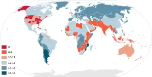 Den kriminelle lavalder varierer meget i verdens lande, men i langt de fleste er grænsen lavere end den danske på 15 år. Selv inden for den Europæiske Union er der ret store variationer, f.eks. Irland (10 år; det samme som England og Wales), Belgien og Holland (12 år), Frankrig (13 år), Italien, Spanien og Tyskland (14 år), alle de Nordiske lande (15 år), og Portugal (16 år). I nogle af disse lande er den laveste alder dog kun mulig for visse typer af forbrydelser eller under visse omstændigheder.[1]