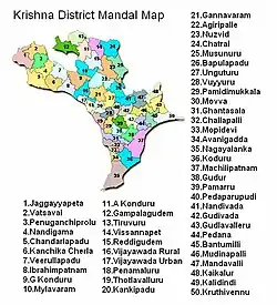 I Andhra Pradesh er mandal det tredje administrative niveau, under staten og distriktene. Krishna distrikt har 50 mandaler.[3]