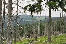 De strenge bevaringsbestemmelser i den polske nationalpark forbyder genplantning af beskadigede og døde skove. På den tjekkiske side er storstilede genplantningsprojekter imidlertid almindelige.