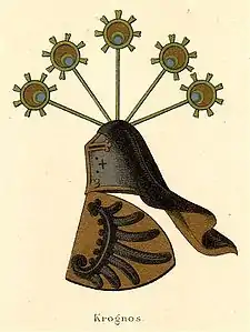 - Oluf Mouritsen Krognos (1535-1573), slægtens sidste mand, gift med Anne Hardenberg