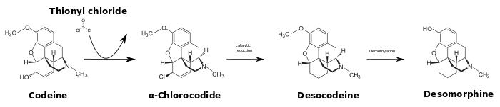 Desomorfin skabte opmærksomhed i 2010 i Rusland på grund af en øgning i ulovlig produktion af stoffet. Desomorfin kan relativt simpelt syntetiseres ud fra kodein, jod og rød fosfor. Desomorfin fremstillet efter denne metode er dog svært forurenet med forskellige giftige og ætsende biprodukter. Gadenavnet i Rusland for hjemmelavet desomorfin er Krokodil, på grund af det skæl-lignende udseende af huden på dem der indtager det.