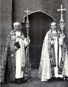 Ærkebiskoppen af Canterbury, som har forrang over alle andre gejstlige og alle lægmænd undtagen medlemmer af den kongelige familie,[1] forestår traditionelt kroningen;[2] i hans fravær kan en anden biskop udpeget af monarken tage ærkebiskoppens sted.[3] Der har dog været flere undtagelser. William I blev kronet af ærkebiskoppen af York, da ærkebiskoppen af Canterbury var blevet udnævnt af modpaven Benedikt X, og denne udnævnelse blev ikke anerkendt som gyldig af paven.[4]