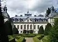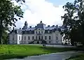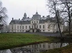 Hovedbygningen har to beboelser og er opført i 1760. Den blev ombygget i 1890'erne til et slot i fransk barokstil med fløje, der har tårne, efter tegninger af Isak Gustaf Clason. Slottet ligger på en lille ø omgivet af en voldgrav.