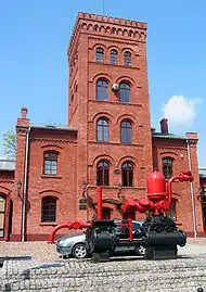 Karol Scheibler byggede sit første fabrikskompleks ved Vandtorvet, som han i 1854 fik overrækt af bystyret. I de følgende år fra 1855 byggede han bomuldsspinderier (1855 og 1868), væverier (1856 og 1868), fyrrum (1856) og magasiner (1856 og 1870) her. I årene 1865-1868 byggede han desuden et kompleks af fem arbejderhuse. Ved siden af forretningen byggede han i 1855 sit eget bolighus, som i 1865 blev ombygget til et neorenæssancepalads (Karol Scheiblers Murstenshus). Senere blev også nye arbejderhuse (1896), en administrasionsbygning (begyndelsen af 1900-tallet) og en handelscentral rejst ved Targowa-gaden.