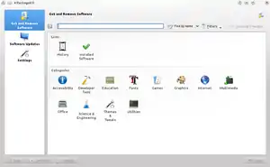 | Pakkehåndtering | KPackageKit, Synaptic, APT |